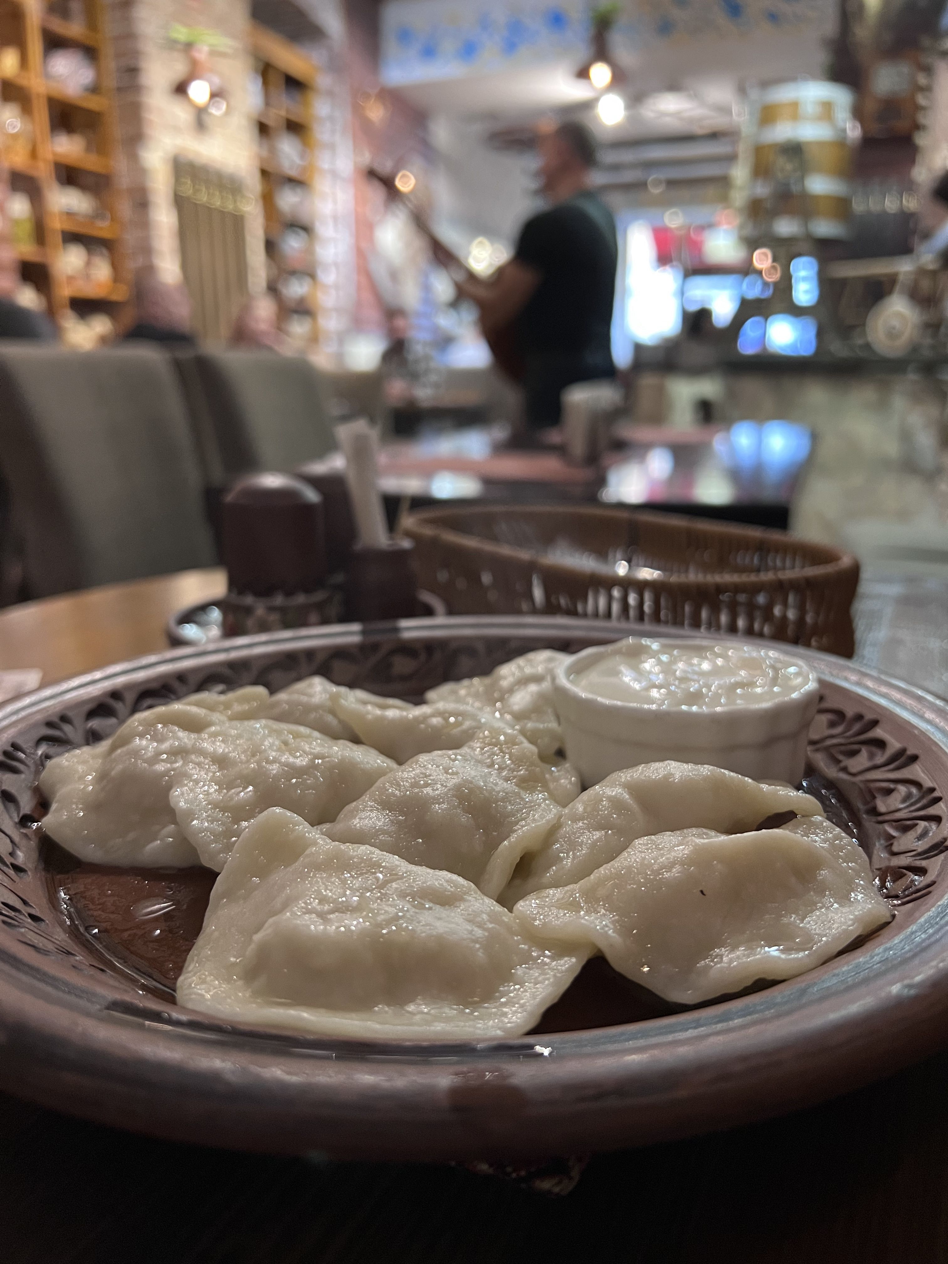 My train to Chernivsti was not departing until 3am next day, but I had to be back at the train station before midnight because of the curfew. Thankfully, I had time to venture to the city and enjoy a traditional Ukrainian meal of borscht and varenyky—delicious dumplings, which are very similar to Polish pierogi.