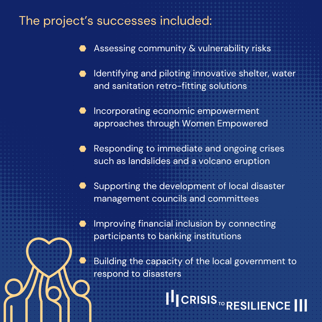 Because extreme weather events are an ever-present concern in this region, disaster risk reduction committees were established, community-mapping was completed with local stakeholders and better protocols were established to respond when crises hit.