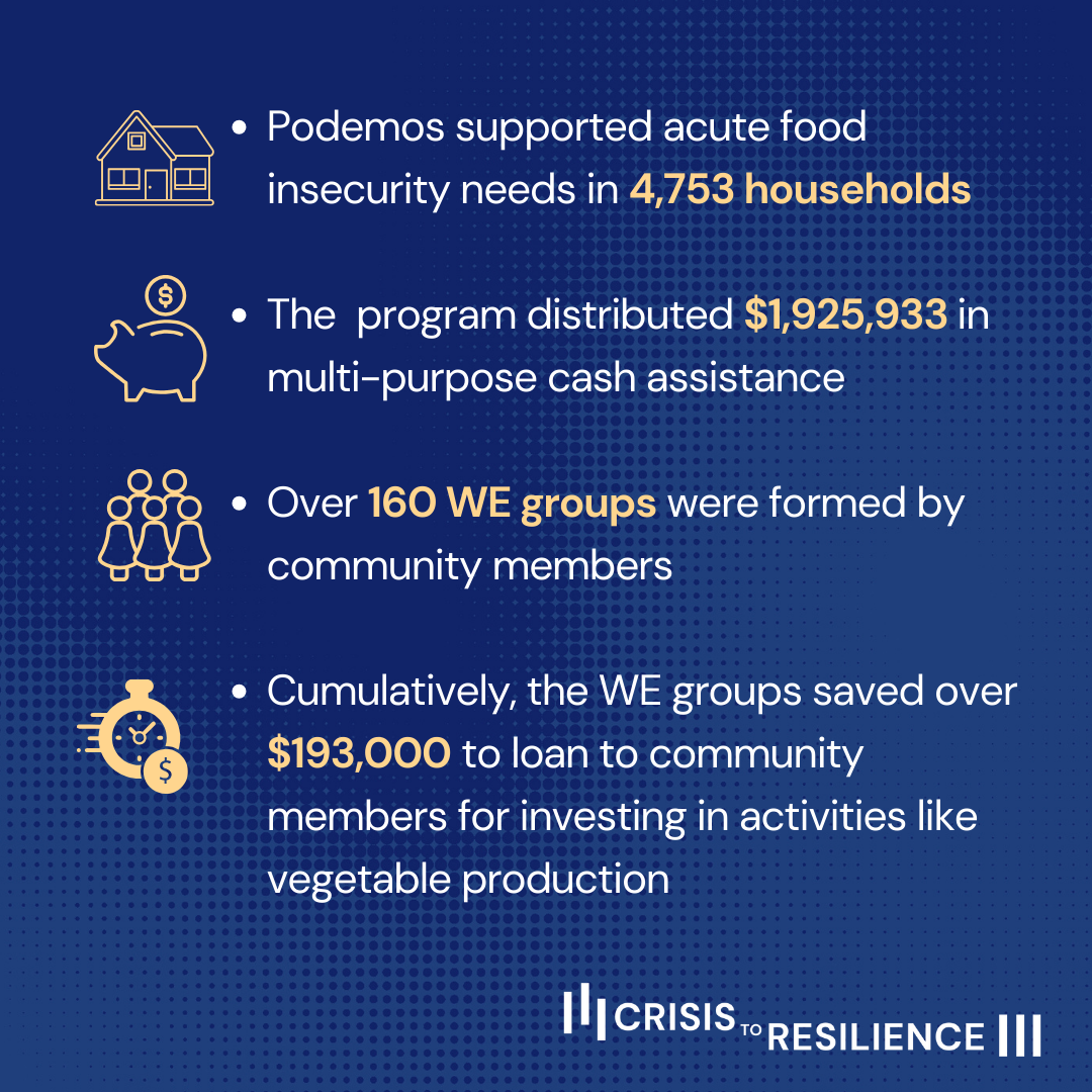 With funding from USAID/BHA, Global Communities is in the final months of executing Podemos, a program that has addressed these challenges, in part, by ensuring minimum living standards for people affected by disasters in the region.